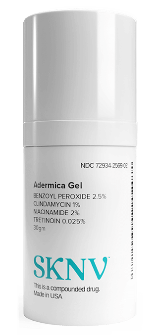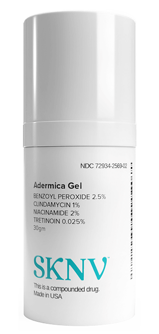 *The information provided regarding active ingredients is for general informational purposes only and does not pertain to any specific SKNV formulation. Medications produced outsourcing facilities, such as SKNV—along with their active pharmaceutical ingredients—are exempt from FDA premarket approval requirements, including clinical trials for safety, efficacy, and intended use. Adermica Gel is made by SKNV LLC, an FDA-Registered 503B Outsourcing Facility. SKNV offers medication options without inactive ingredients that may be potential allergens or irritants for certain patients, as determined by the prescriber.