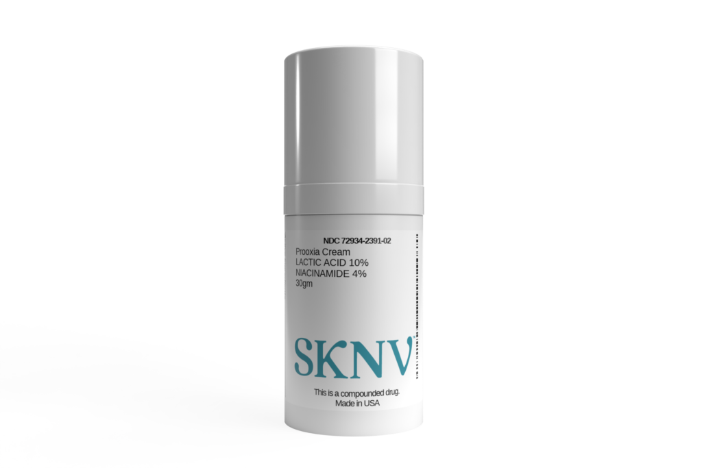 • Other medications: Not all of SKNV’s melasma formulations contain hydroquinone. SKNV’s Prooxia Cream is intended to address melasma concerns, and it contains 10% lactic acid and 4% niacinamide.